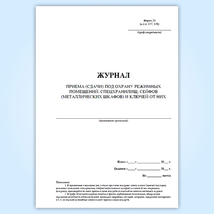 Журнал приема (сдачи) под охрану режимных помещений, спецхранилищ, сейфов (металлических шкафов) и ключей от них в Сургуте купить