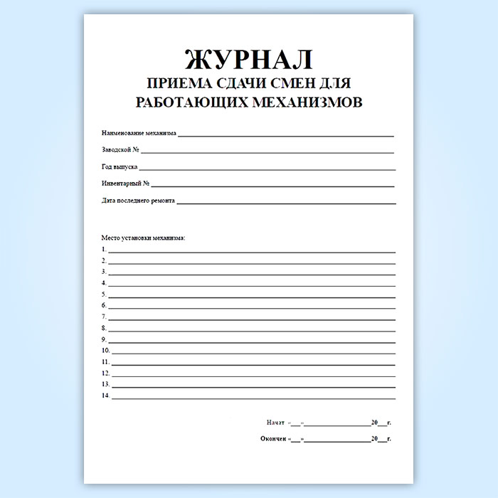 Журнал приема-сдачи смен для работающих на механизмах в Сургуте купить