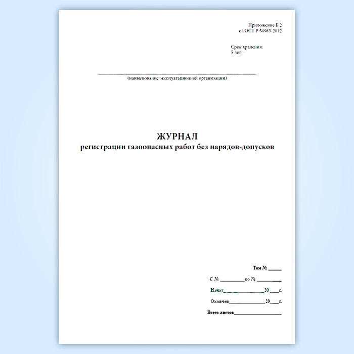 Журнал регистрации газоопасных работ без нарядов-допусков в Сургуте купить