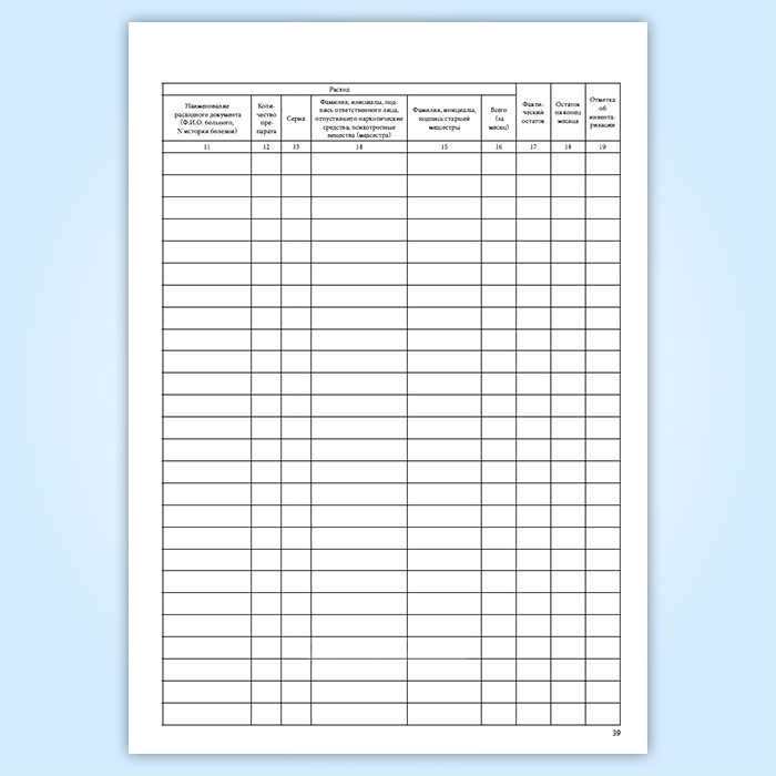 Журнал регистрации операций, связанных с оборотом наркотических средств и психотропных веществ дежурной (процедурной) медицинской сестры в стационарном отделении медицинской организации в Сургуте купить