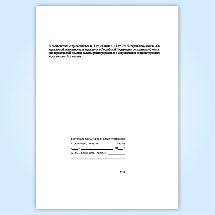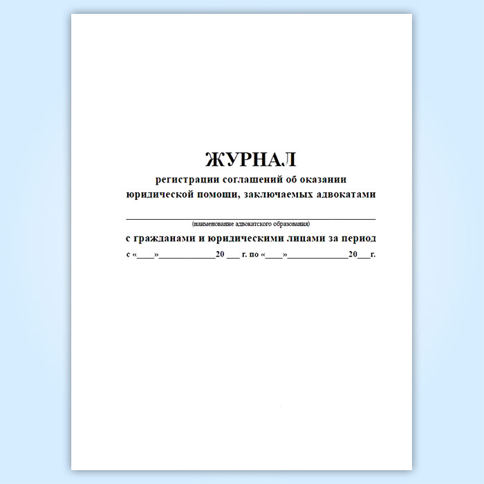 Журнал регистрации соглашений об оказании юридической помощи, заключаемых адвокатами с гражданами и юридическими лицами в Сургуте купить