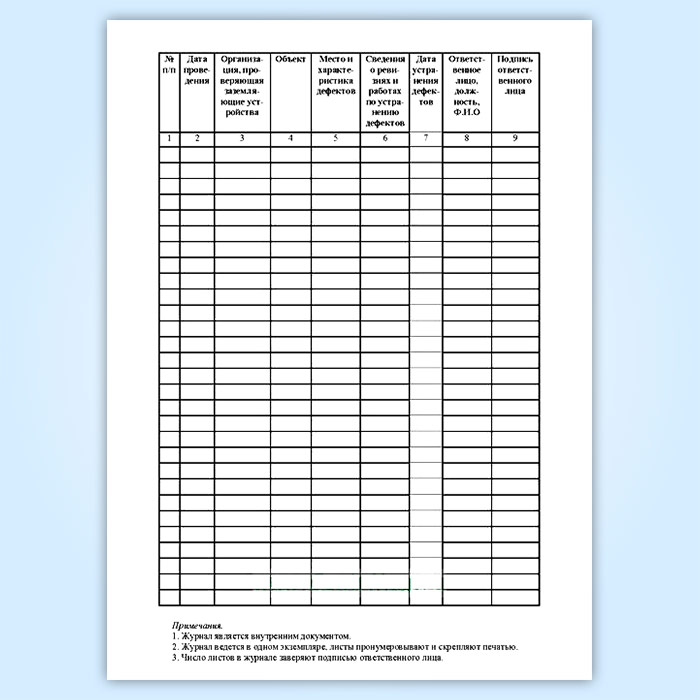Журнал результатов ревизий устройств молниезащиты, проверочных испытаний заземляющих устройств (форма Б.30) в Сургуте купить