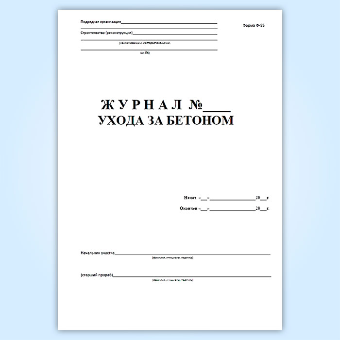 Журнал ухода за бетоном (форма Ф-55) в Сургуте купить