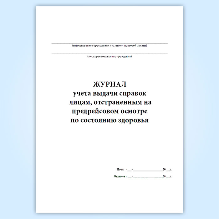 Журнал учета выдачи справок лицам, отстраненным на предрейсовом осмотре по состоянию здоровья в Сургуте купить