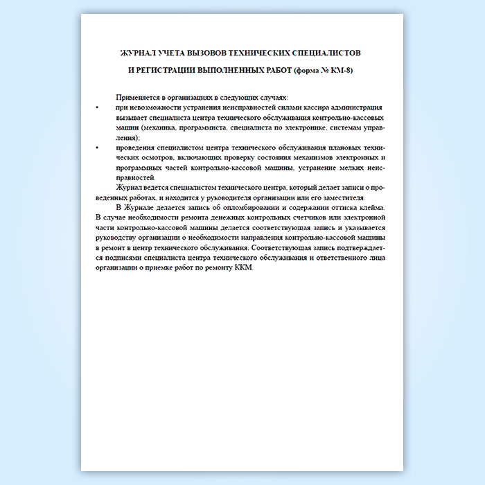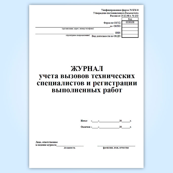 Журнал учета вызовов технических специалистов и регистрации выполненных работ (форма КМ-8) в Сургуте купить
