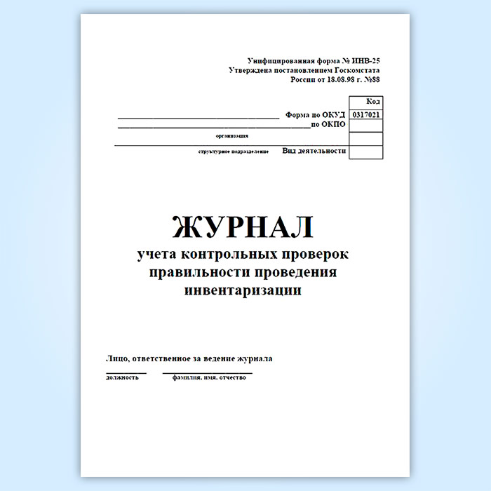 Журнал учета контрольных проверок правильности проведения инвентаризаций (форма ИНВ-25) в Сургуте купить