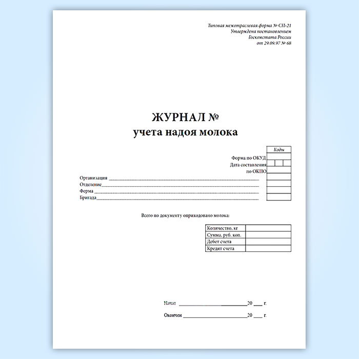 Журнал учета надоя молока (форма № СП-21) в Сургуте купить