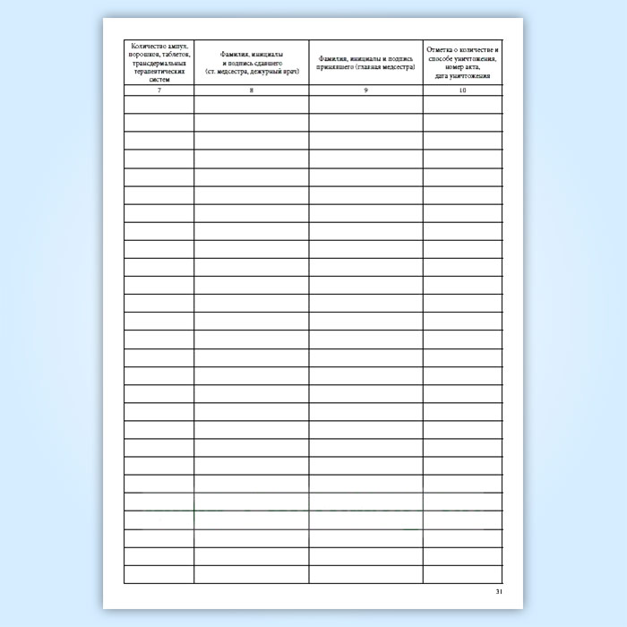 Журнал учета неиспользованных рецептурных бланков на наркотическое средство или психотропное вещество и остатков неиспользованных наркотических средств и психотропных веществ, сданных доверенными лицами умерших больных, у главной медицинской сестры амбулаторного отделения медицинской организации в Сургуте купить