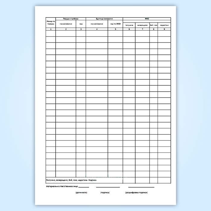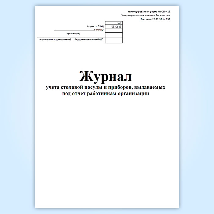 Журнал учета столовой посуды и приборов, выдаваемых под отчет работникам организации (форма № ОП-19) в Сургуте купить