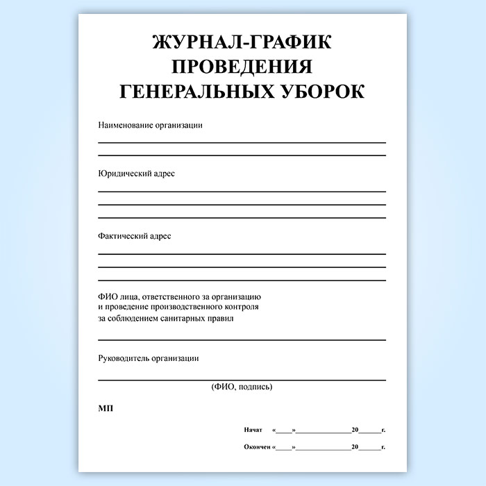 Журнал-график проведения генеральных уборок в Сургуте купить
