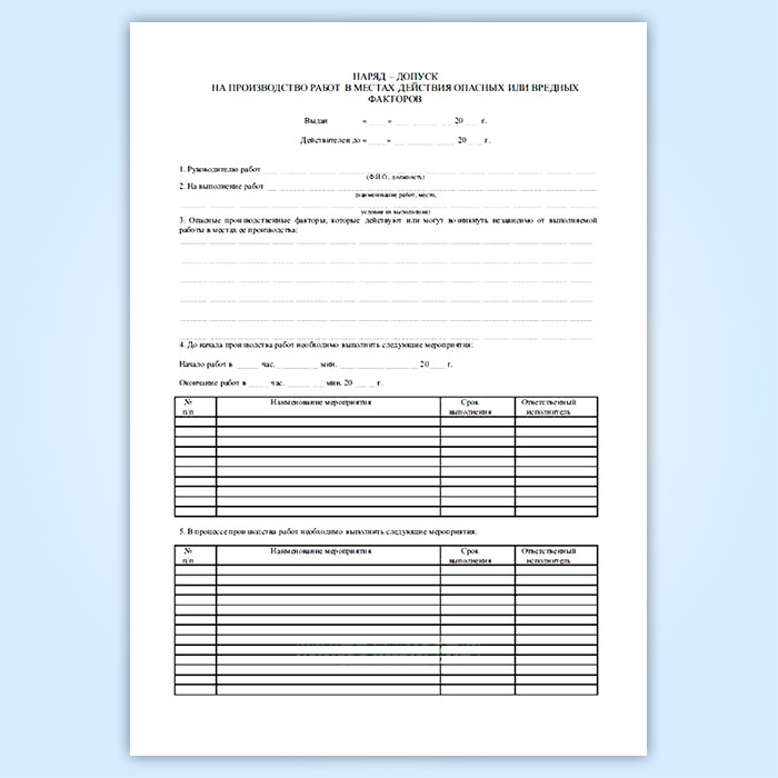 Книга наряд-допусков на выполнение работ, относительно которых предъявляются повышенные требования по технике безопасности в Сургуте купить