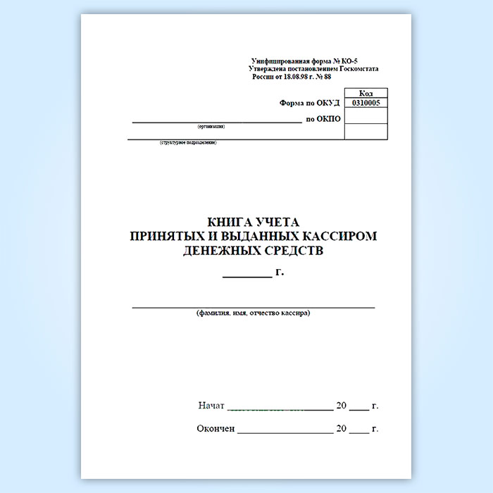 Книга учета принятых и выданных кассиром денежных средств (форма № КО-5) в Сургуте купить