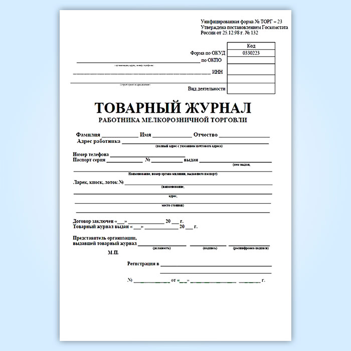 Товарный журнал работника мелкорозничной торговли (форма № ТОРГ-23) в Сургуте купить