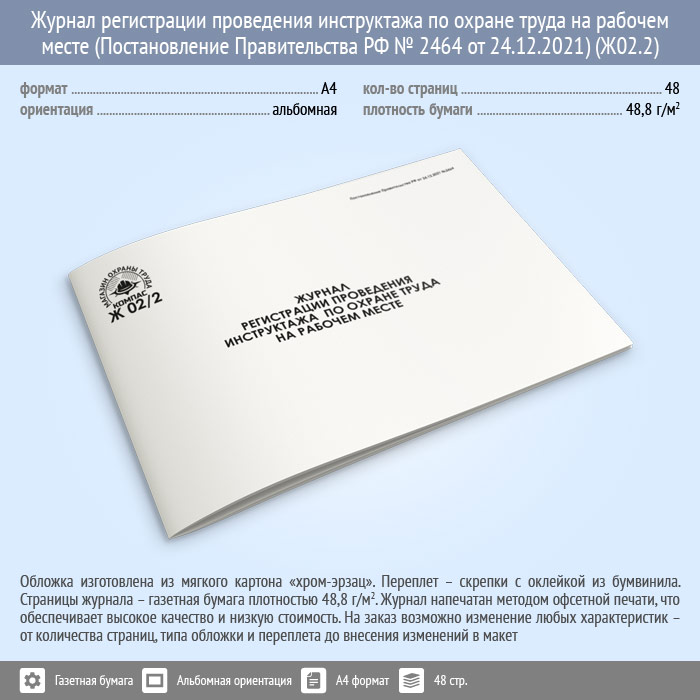 Журнал регистрации проведения инструктажа по охране труда на рабочем месте (Постановление Правительства РФ № 2464 от 24.12.2021) (48 стр., Ж02.2) в Сургуте купить
