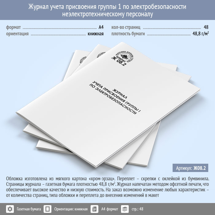 Журнал учета присвоения группы 1 по электробезопасности неэлектротехническому персоналу (48 стр., Ж08.2) в Сургуте купить
