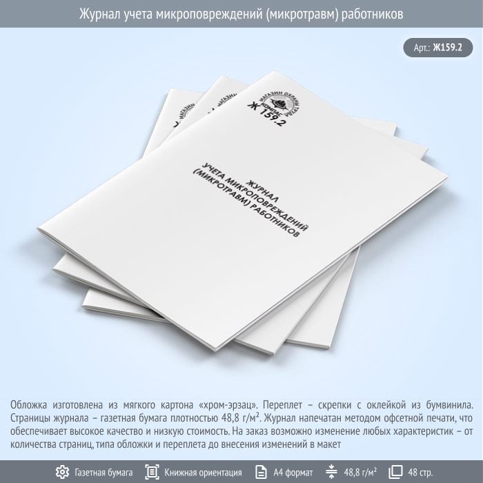 Журнал учета микроповреждений (микротравм) работников (48 стр., Ж159.2) в Сургуте купить