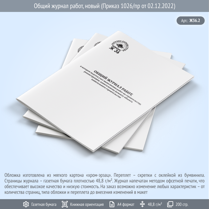Общий журнал работ, новый (Приказ 1026/пр от 02.12.2022, 200 стр., Ж36.2) в Сургуте купить
