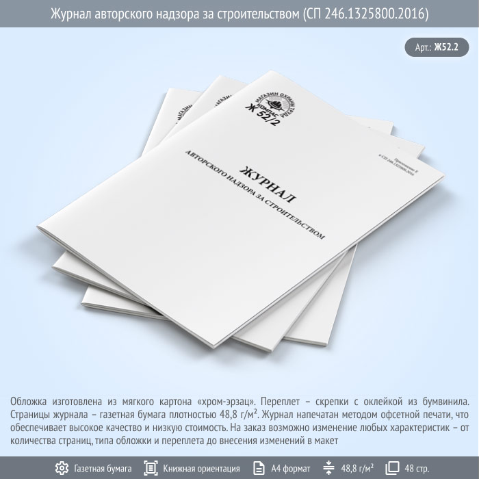 Журнал авторского надзора за строительством (СП 246.1325800.2016) (48 стр., Ж52.2) в Сургуте купить