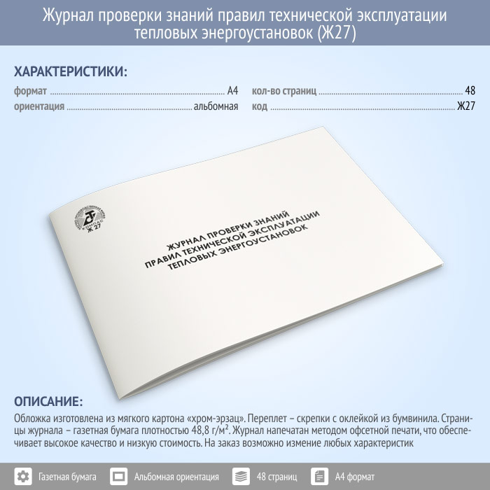 Журнал проверки знаний правил технической эксплуатации тепловых энергоустановок (48 стр., Ж27) в Сургуте купить