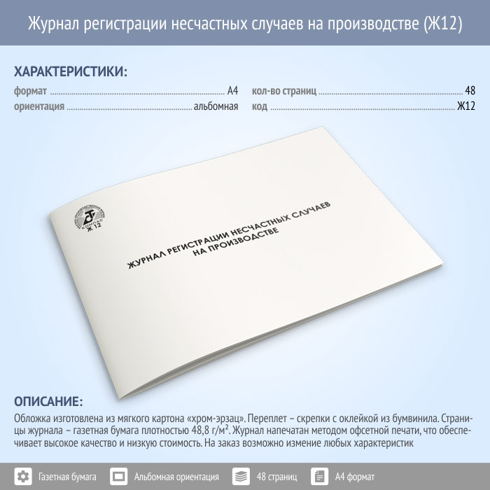 Журнал регистрации несчастных случаев на производстве (48 стр., Ж12) в Сургуте купить