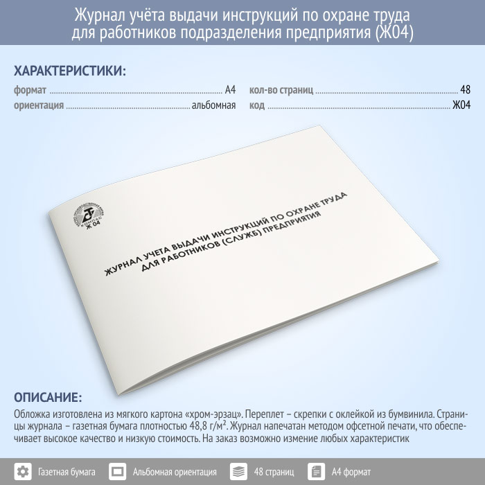 Журнал учета выдачи инструкций по охране труда для работников подразделений (служб) предприятия (48 стр., Ж04) в Сургуте купить