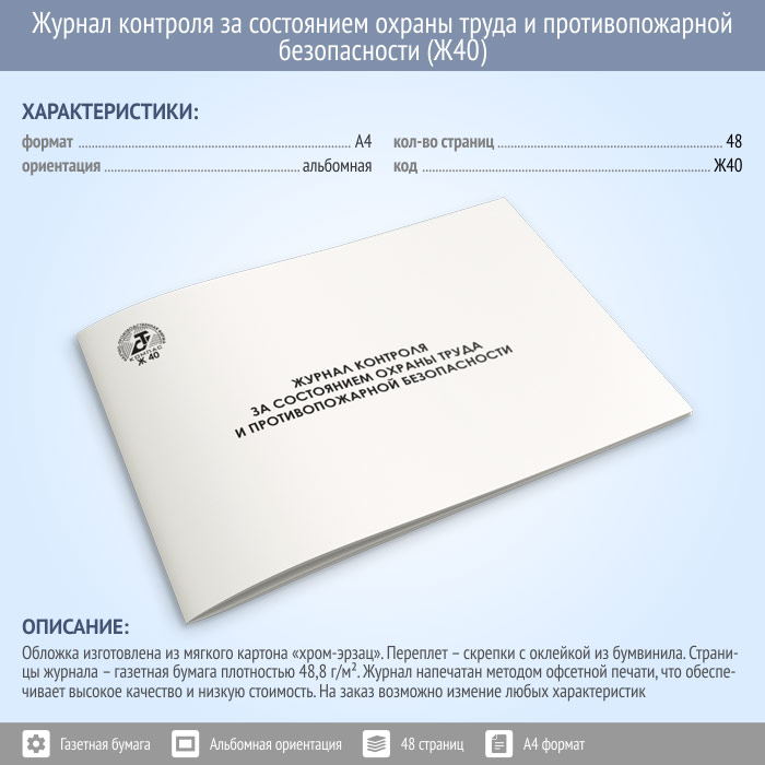 Журнал контроля за состоянием охраны труда и противопожарной безопасности (48 стр., Ж40) в Сургуте купить