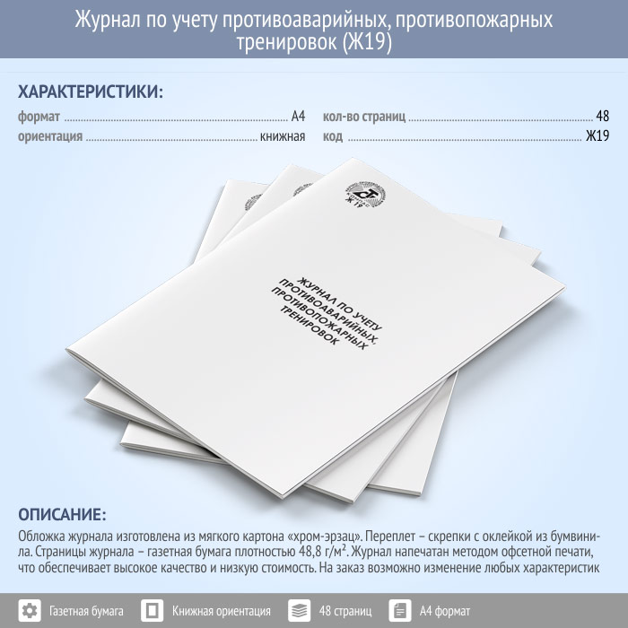 Журнал по учету противоаварийных, противопожарных тренировок (48 стр., Ж19) в Сургуте купить