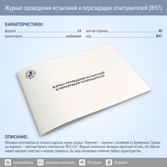 Журнал проведения испытаний и перезарядки огнетушителей (48 стр., Ж97) в Сургуте купить