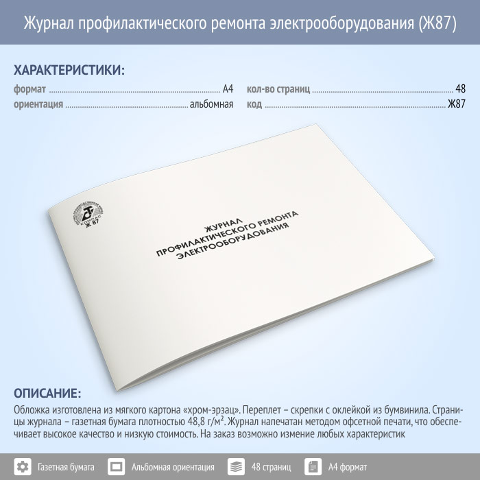 Журнал профилактического ремонта электрооборудования (48 стр., Ж87) в Сургуте купить