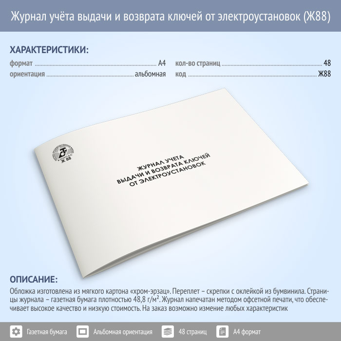 Журнал учета выдачи и возврата ключей от электроустановок (48 стр., Ж88) в Сургуте купить