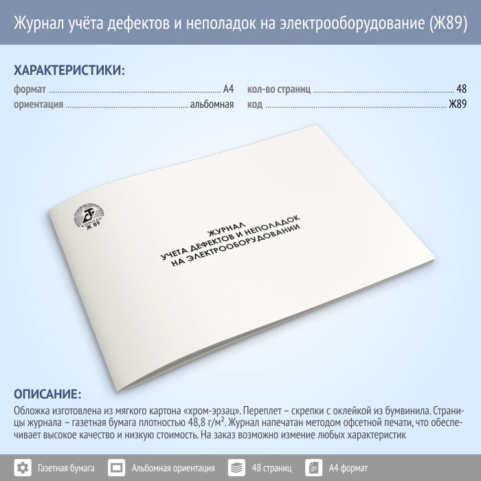 Журнал учета дефектов и неполадок электрооборудования (48 стр., Ж89) в Сургуте купить