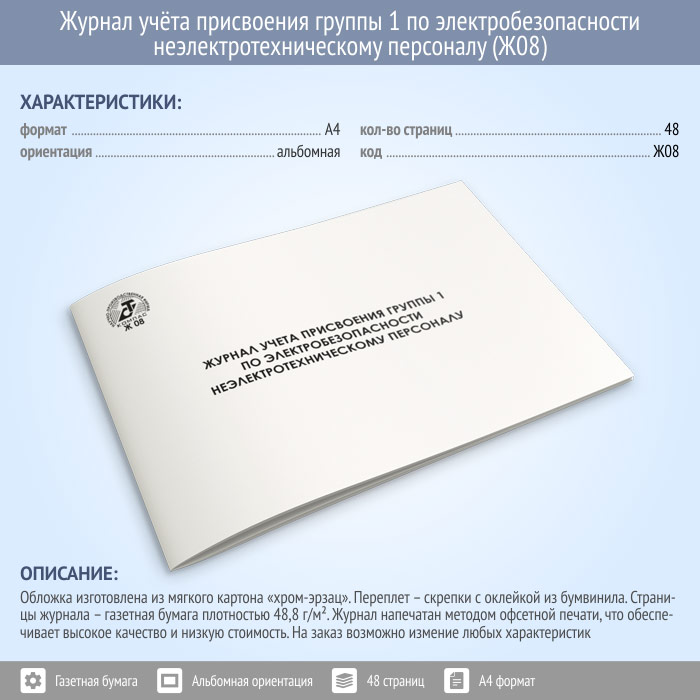 Журнал учета присвоения группы 1 по электробезопасности неэлектротехническому персоналу (48 стр., Ж08) в Сургуте купить