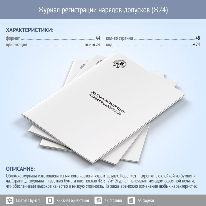 Журнал регистрации нарядов-допусков (48 стр., Ж24) в Сургуте купить