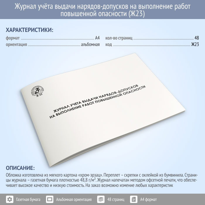 Журнал учета выдачи нарядов-допусков на выполнение работ повышенной опасности (48 стр., Ж23) в Сургуте купить