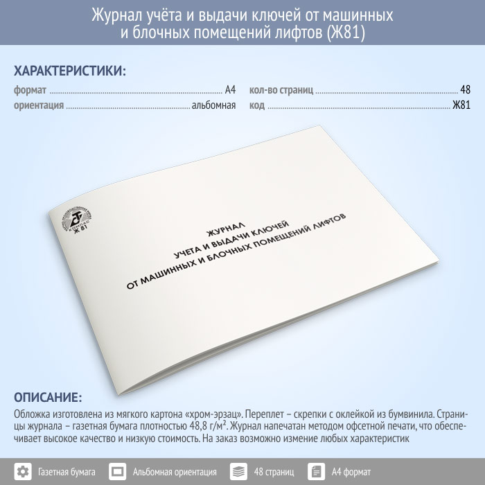Журнал учета и выдачи ключей от машинных и блочных помещений лифтов (48 стр., Ж81) в Сургуте купить