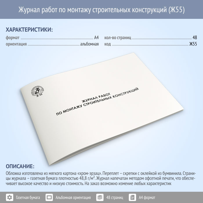 Журнал работ по монтажу строительных конструкций (48 стр., Ж55) в Сургуте купить