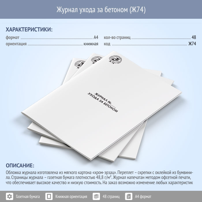 Журнал ухода за бетоном (48 стр., Ж74) в Сургуте купить