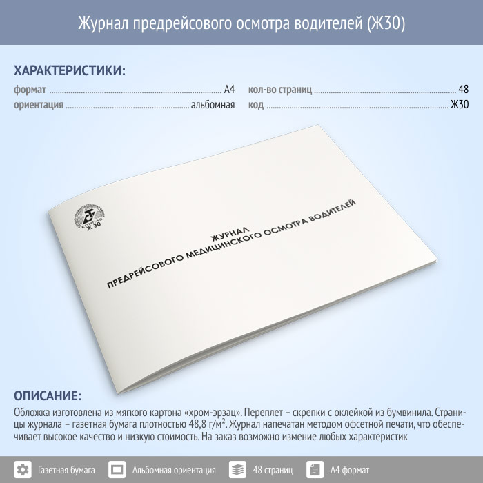 Журнал предрейсового осмотра водителей (48 стр., Ж30) в Сургуте купить