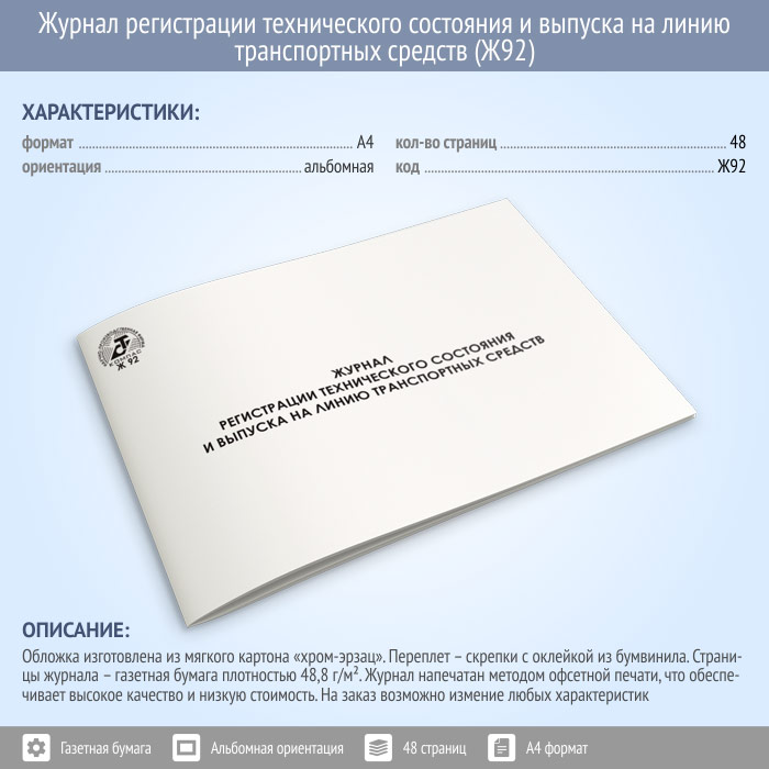 Журнал регистрации технического состояния и выпуска на линию транспортных средств (48 стр., Ж92) в Сургуте купить