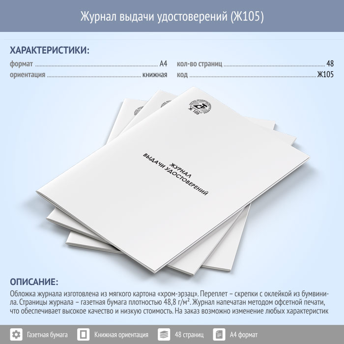 Журнал выдачи удостоверений (48 стр., Ж105) в Сургуте купить