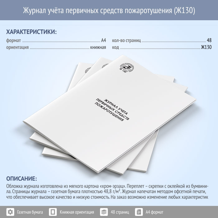 Журнал учета первичных средств пожаротушения (48 стр., Ж130) в Сургуте купить
