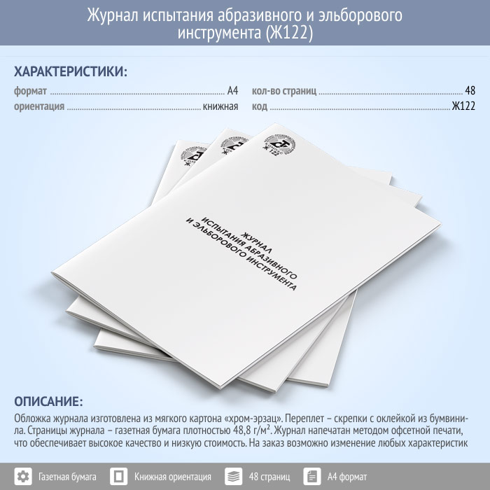 Журнал испытания абразивного и эльборового инструмента (48 стр., Ж122) в Сургуте купить