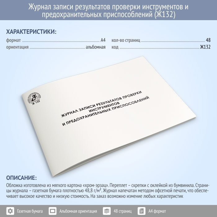Журнал записи результатов проверки инструментов и предохранительных приспособлений (48 стр., Ж132) в Сургуте купить