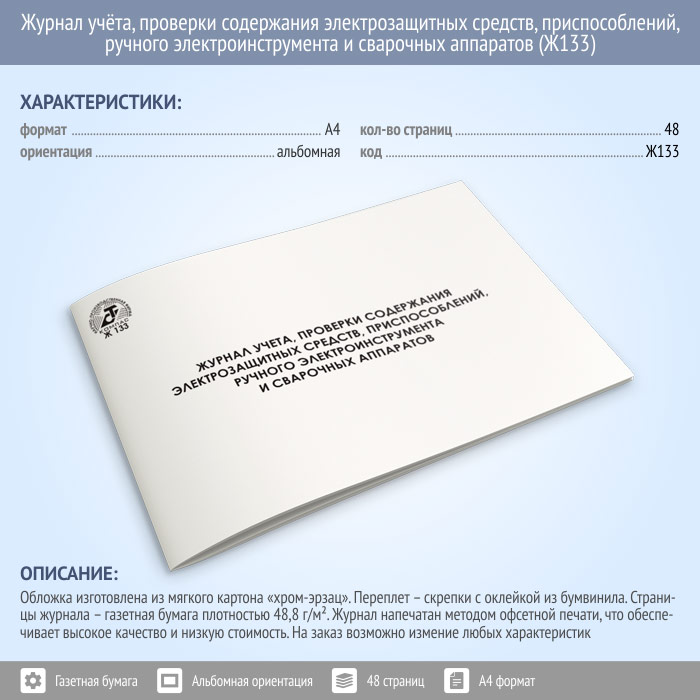 Журнал учета проверки и содержания электрозащитных средств, приспособлений, ручного электроинструмента и сварочных аппаратов (48 стр., Ж133) в Сургуте купить