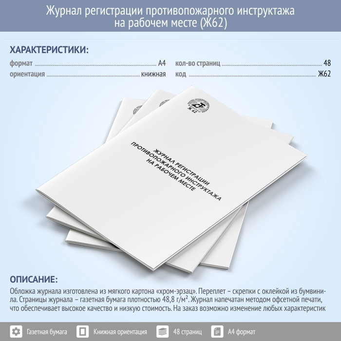 Журнал регистрации противопожарного инструктажа на рабочем месте (48 стр., Ж62) в Сургуте купить