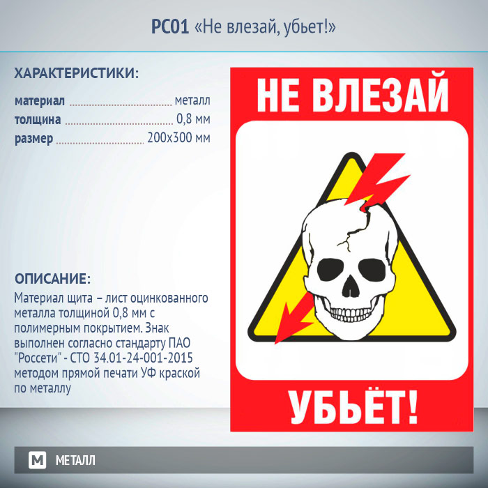 Знак «Не влезай, убьет!», РС01 (металл, 200х300 мм) в Сургуте купить