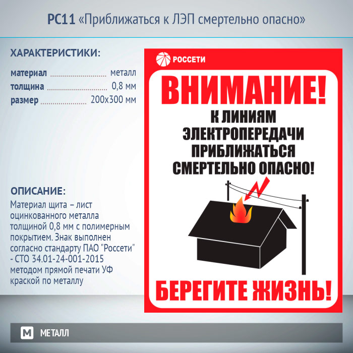 Знак «Приближаться к ЛЭП смертельно опасно», РС11 (металл, 200х300 мм) в Сургуте купить