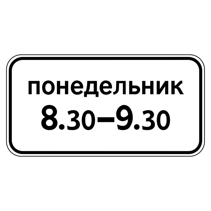 Дорожный знак 8.5.7 «Время действия» (металл 0,8 мм, III типоразмер: 450х900 мм, С/О пленка: тип А коммерческая) в Сургуте купить