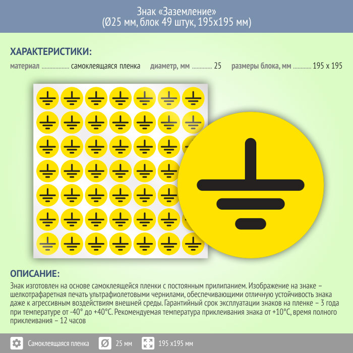 Знак (плакат) «Заземление», S46 (пленка, диаметр 25 мм, блок 49 штук, 195х195 мм) в Сургуте купить