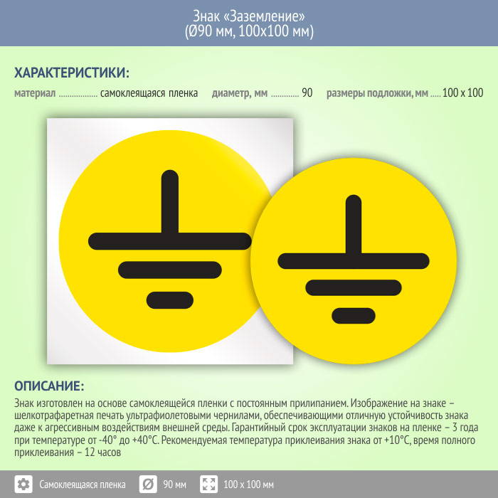 Знак (плакат) «Заземление», S46 (пленка, диаметр 90 мм, 100х100 мм) в Сургуте купить